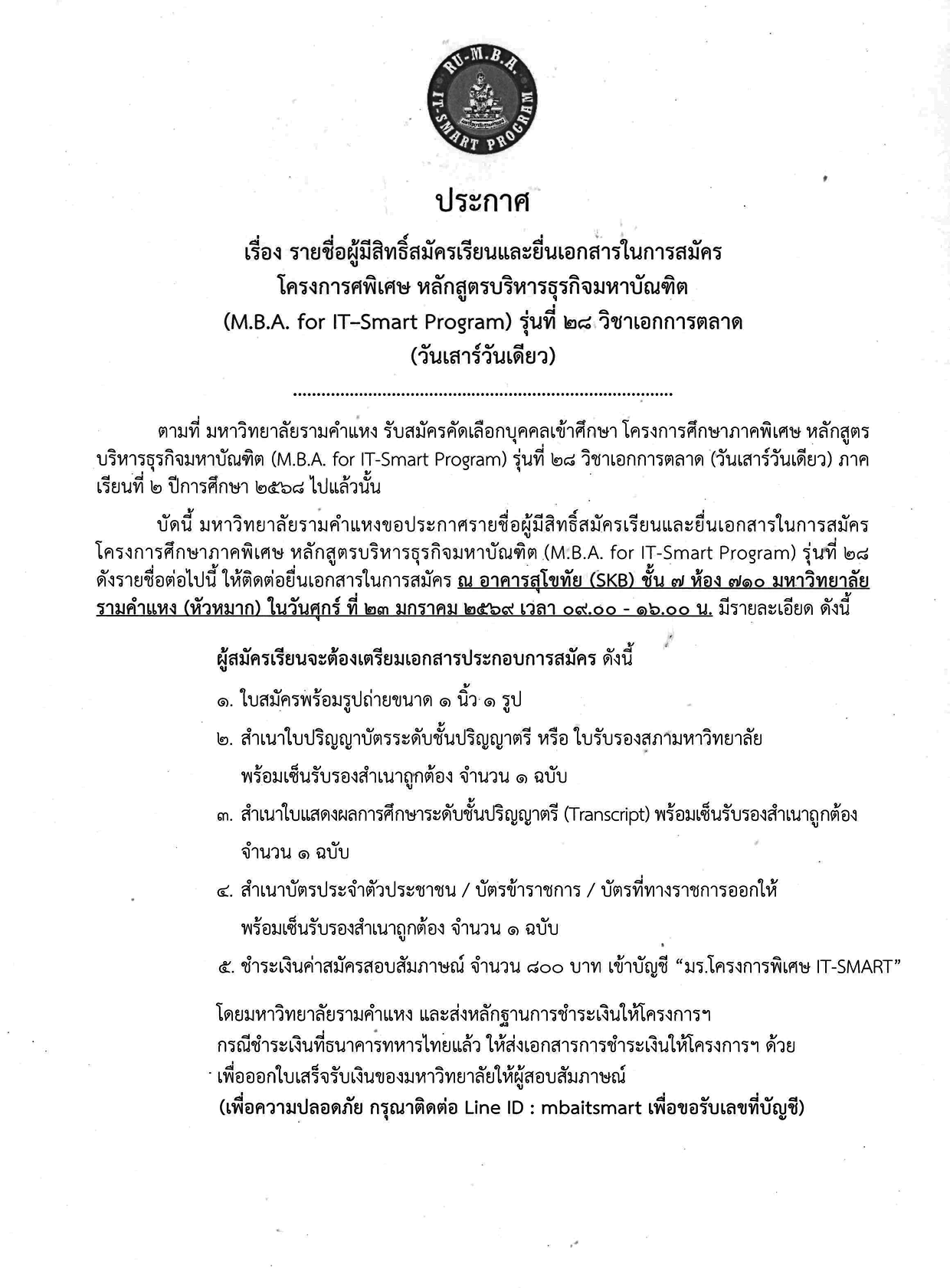 หลักเกณฑ์ การให้คะแนน ตลอดจน การสัมภาษณ์ เป็นดุลพินิจของอาจารย์ และโครงการฯ นอกเหนือจากนี้ สามารถตรวจสอบรายละเอียดข้อมูล ของผู้ที่มีสิทธิ์เข้าสัมภาษณ์ และรายละเอียดนัดหมายในการเข้าสัมภาษณ์ ทั้งนี้ ผู้สมัครสามารถแจ้งปรับเปลี่ยนวัน-เวลา ในการสัมภาษณ์ได้ และขอนัดสัมภาษณ์ล่วงหน้าได้ก่อนวัน-เวลาที่กำหนด